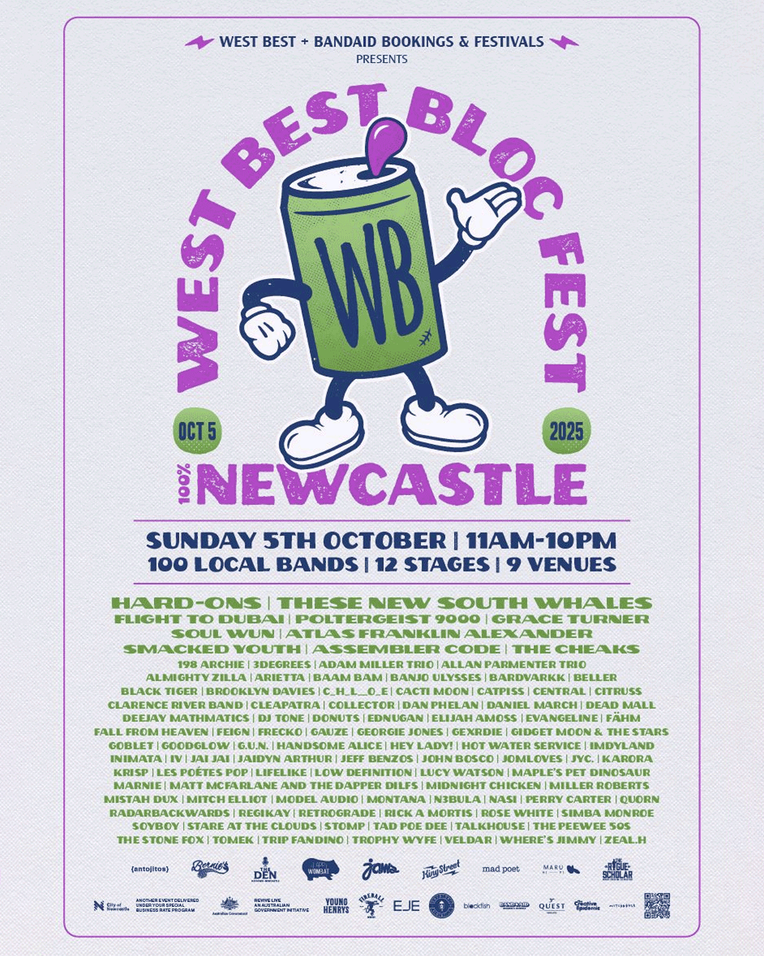 The biggest showcase of Newcastle’s live music scene is returning for its 4th year. West Best Bloc Fest is a day of celebration and coming together for our booming music community. The only event of kind in Newcastle, featuring 100 bands performing at venues on the block in Newcastle West.